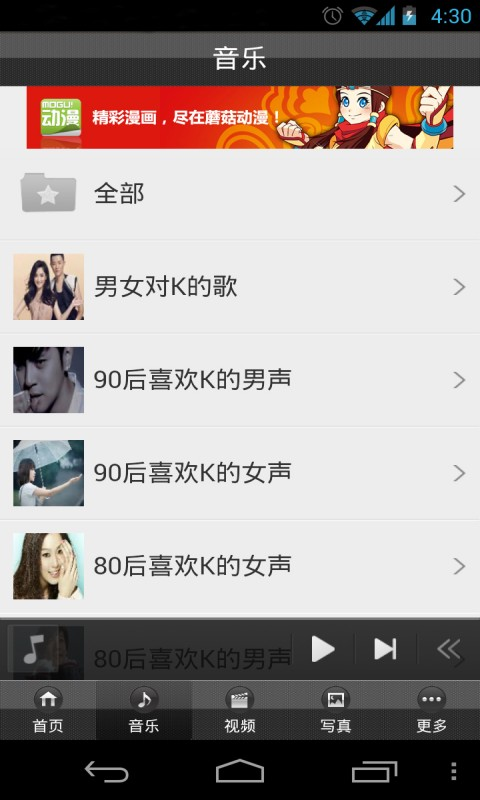 掌握時尚流行歌曲,給你一個“K歌”時光!這次“K歌音樂”的歌曲用了很多時間精心挑選。雖然包括了不同風格歌手的作品,但都是在音樂制作上極有水準之作,讓整張精選輯抓緊流行脈搏。讓無限歡悅的氣氛帶領每一個使用“K歌音樂”的用戶體會快樂的音樂時光。喜歡“K歌”的朋友們一定不會錯過這個客戶端,熱播音樂、MV資訊、風采寫真,萬千精彩掌中匯。