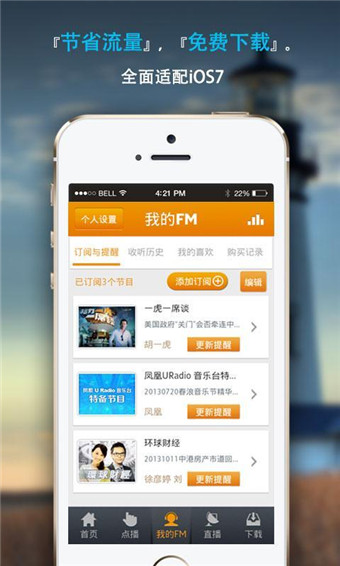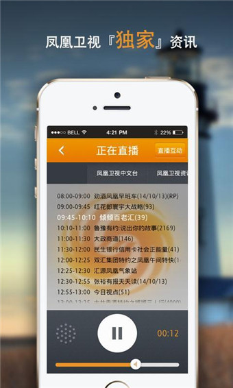 1.鳳凰U Radio:優(yōu)悅早新聞、今晚不安婧、天天互動、3D話新聞、天天互動、你的養(yǎng)生坊、Benfan.com、全媒體時空等,鳳凰U Radio綜合臺、鳳凰U Radio音樂臺節(jié)目盡在掌握。2.鳳凰衛(wèi)視:鏘鏘三人行、資訊速遞、新聞今日談、傾傾百老匯、開卷八分鐘、魯豫有約、鳳凰大視野、時事開講等節(jié)目,鳳凰衛(wèi)視中文臺、鳳凰衛(wèi)視資訊臺、鳳凰衛(wèi)視香港臺節(jié)目隨時收聽收看,4.0.2版本已支持airplay,歡迎體驗(yàn)。