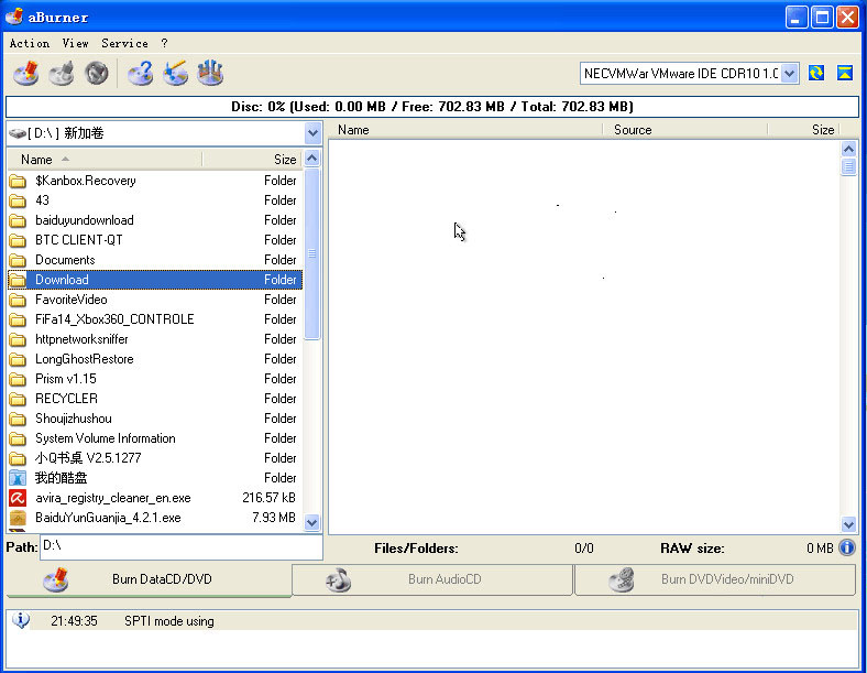 光盤刻錄精靈(aBurner)是一款非常簡單好用的免費(fèi)光盤刻錄軟件,界面功能相互獨(dú)立,需要哪個功能只需點(diǎn)擊相應(yīng)按鈕即可實(shí)現(xiàn)操作,以后要刻錄數(shù)據(jù)、音樂和視頻的話,這一個軟件足夠了。