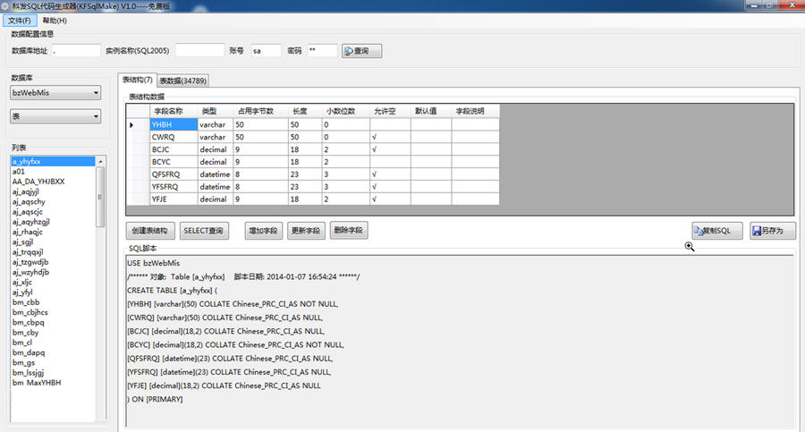 3、自動(dòng)識別主鍵、字段類型,生成標(biāo)準(zhǔn)的Transact-SQL語句;