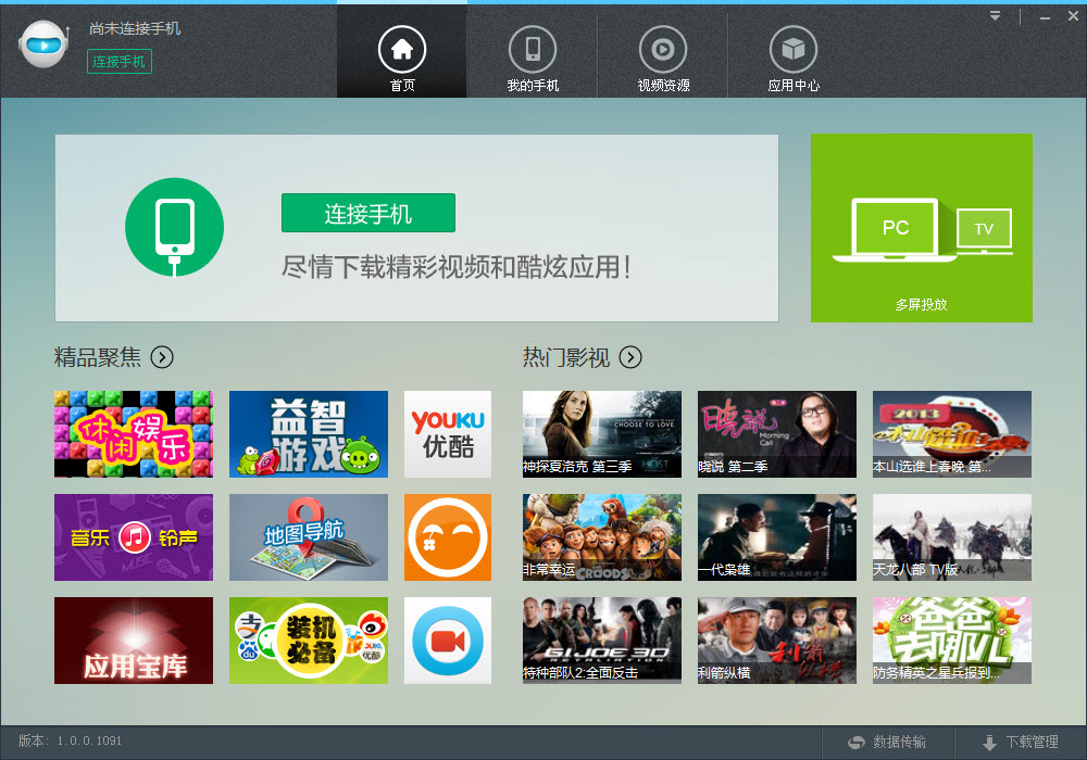 輕松便捷PC端發(fā)短信更加方便,輕松管理手機視頻、圖片,為手機增光添彩,節(jié)省手機流量,輕松獲取所需應(yīng)用