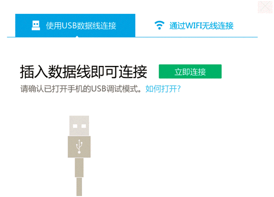 1、首先請您插入數(shù)據(jù)線,并確認已經(jīng)打開手機USB調(diào)試模式。