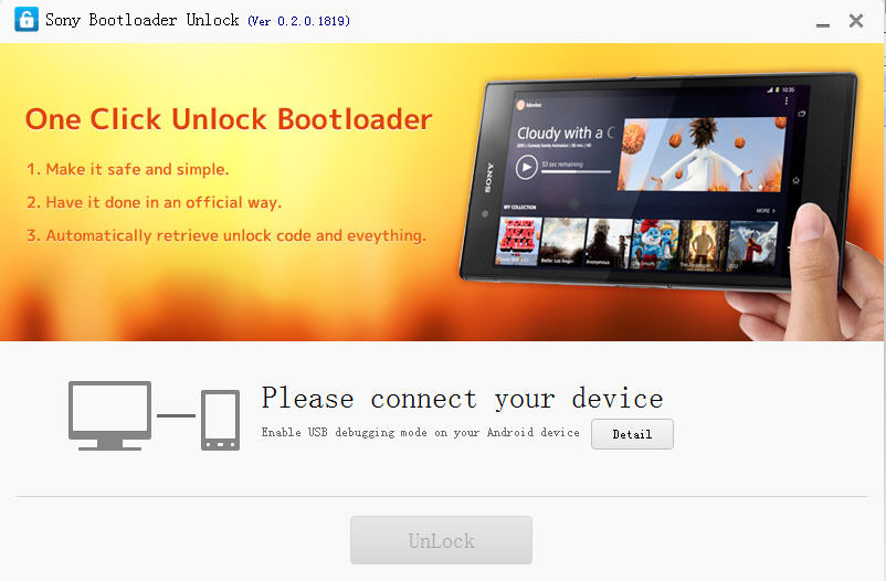 索尼解鎖工具是一款用于解鎖SONY手機(jī)Bootloader的英文免費(fèi)軟件,雖然是英文界面,但是使用比較簡(jiǎn)單,實(shí)現(xiàn)完全控制SONY設(shè)備,并為刷機(jī)做好準(zhǔn)備。