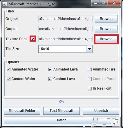 a.運行mcpatcher-1.1.12_02,單擊Browse