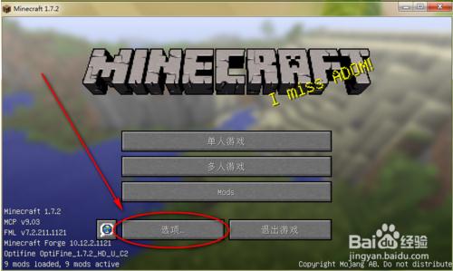 打開【我的世界】游戲,在主界面點擊左下角的【選項】。