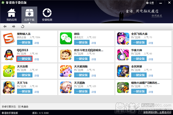 2、應(yīng)用下載界面點(diǎn)擊一鍵安裝: