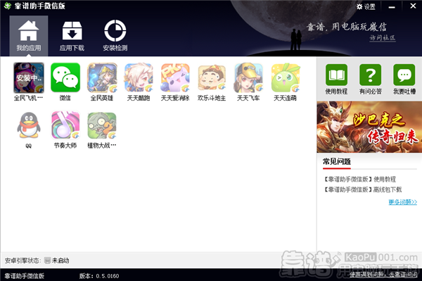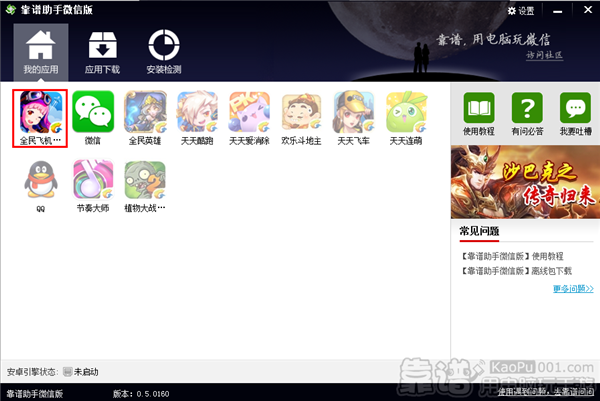 2.打開靠譜助手直接搜微信。然后選一個(gè)自已想安裝的版本,在此小編選最新版微信6.0,安裝過程有點(diǎn)慢,耐心等一會(huì)兒即可。微信安裝后點(diǎn)啟動(dòng)登錄就可以使用微信啦。