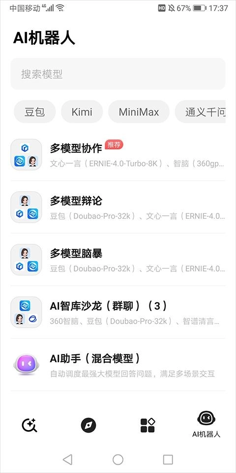 2、大模型群聊:納米AI搜索集合了包括推理大模型-R1/V3等在內(nèi)的16位知名大模型專家。你可隨心挑選心儀的AI大模型組建群聊,它們會自動分工,為你解決所有難題,帶你一站式感受國內(nèi)頂尖AI智慧,體驗超強大的智能AI陣容。