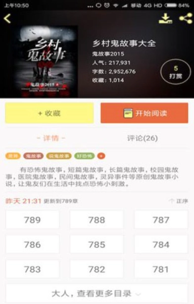 鬼故事這款軟件,有著豐富的內(nèi)容與細(xì)致的分類,是專門用于閱讀恐怖小說的。它以小說文本的形式,呈現(xiàn)出各類令人毛骨悚然的靈異傳說以及離奇案件。和影視作品那種固定的視覺沖擊不同,小說能給予讀者無限的想象空間,從而更強(qiáng)烈地激發(fā)讀者內(nèi)心的恐懼,讓讀者獲得更深的沉浸感。不管你是恐怖懸疑題材的鐵桿粉絲,還是打算在萬籟俱寂的深夜尋求一些刺激,這款軟件都能為你帶來極具滿足感的閱讀體驗(yàn)。