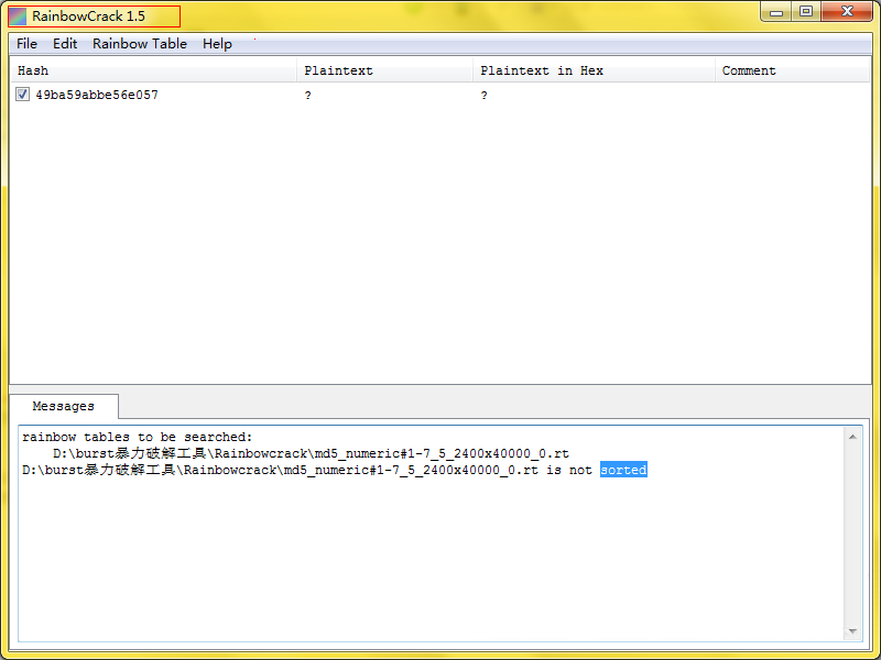 由于rainbowcrack是一個(gè)多功能的密碼破解器,因此提示信息比較復(fù)雜,
