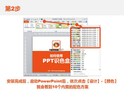 自PowerPoint更新到2007版本之后,所有PPT文件中的配色方案均采用了XMl的文件格式,并可單獨(dú)讀取,導(dǎo)入與導(dǎo)出。PPT識(shí)色盒就是一個(gè)快速導(dǎo)入的工具,導(dǎo)入后即可在PowerPoint中輕松使用,并有豐富的在線配色庫(kù),所見(jiàn)即所得。