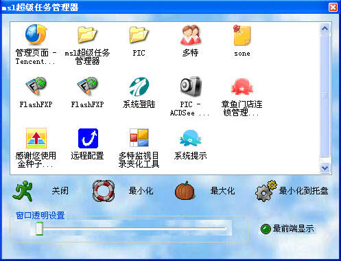 msl超級任務(wù)管理器是一款多功能任務(wù)管理工具,本款工具可以很直白的展現(xiàn)你系統(tǒng)所運行的所有程序,讓你看的清楚,管理輕松。超級任務(wù)管理器還支持對窗口,歡迎下載使用。