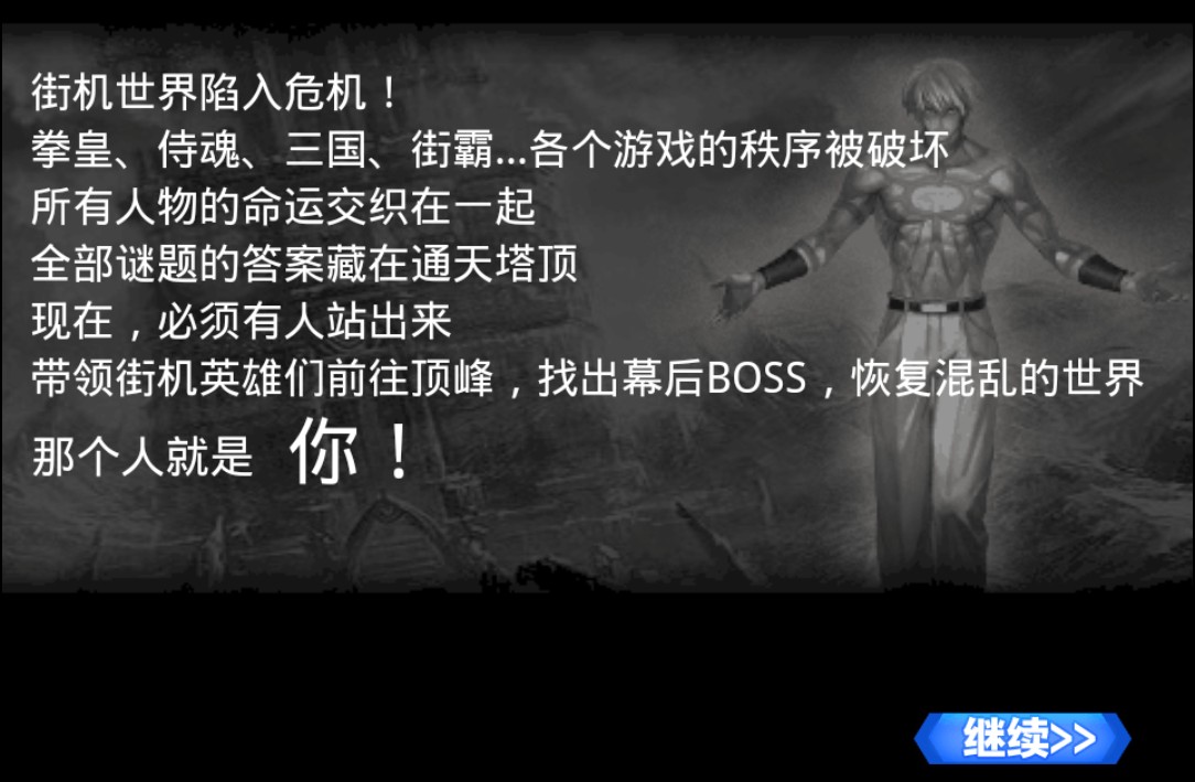 瘋狂游戲廳街機(jī)世界陷入混亂,各個(gè)游戲的秩序被破壞。玩家需要帶領(lǐng)八神、霸王丸等經(jīng)典街機(jī)人物,闖過(guò)一個(gè)個(gè)難關(guān),打敗位于通天塔頂?shù)慕謾C(jī)之王,恢復(fù)游戲界的秩序。游戲融合了回合制戰(zhàn)斗、收集、養(yǎng)成等元素,通過(guò)闖關(guān)解鎖各個(gè)街機(jī)游戲中的經(jīng)典人物,將他們培養(yǎng)成強(qiáng)力戰(zhàn)士。組建最強(qiáng)最夢(mèng)幻的街機(jī)隊(duì)伍,不論是重現(xiàn)原作的經(jīng)典組合,還是狂霸酷拽的全BOSS隊(duì),亦或是萌巧可愛的軟妹子隊(duì),都由你來(lái)決定!【 游戲特色】
