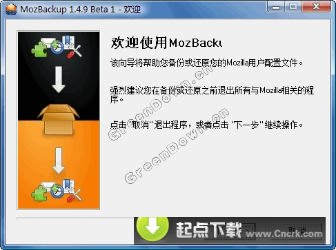 MozBackup V1.4.9 Beta1 漢化綠色免費版 FireFox配置文件又崩潰了...我的插件設置,我的RSS訂閱全都不見了...怎么辦?MozBackup備份軟件可以輕松將Mozilla系列軟件的配置信息保存下來,以備不時之需.最新版本加入了對2.0 Beta2的支持