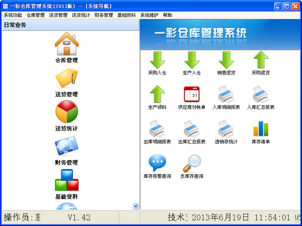 一彩倉庫管理軟件免費版根據(jù)市場需要結(jié)合企業(yè)自身特點量身定做的操作方便、功能完善功能強(qiáng)大個性化極強(qiáng)的倉庫管理系統(tǒng)。充分利用強(qiáng)大的數(shù)據(jù)庫功能給工作帶來的便利。一彩倉庫管理軟件操作簡單,易上手, 配有詳細(xì)的操作說明。【軟件特點】