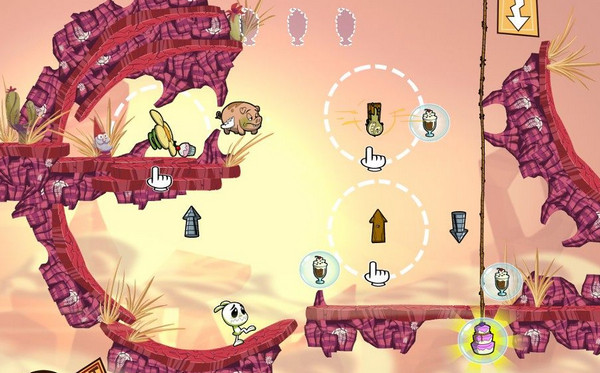《點心大作戰(zhàn)(Eets Munchies)》是一款物理解謎游戲,玩家需要控制一只饞嘴的兔子,穿過屏幕中復雜的關(guān)卡,努力吃到屏幕中所有的點心。點心分為兩種,一種是每關(guān)終點處的蛋糕,另一種則是散落在屏幕中的各種甜食。只有把所有的甜食集齊后,再到終點處吃到點心,你才能以最高的分數(shù)過關(guān)