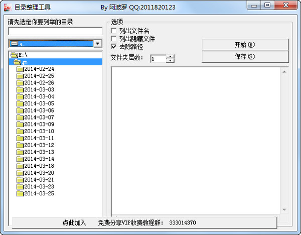 1、本軟件綠色免費、無需安裝2、運行主界面,選定要列舉的目錄
