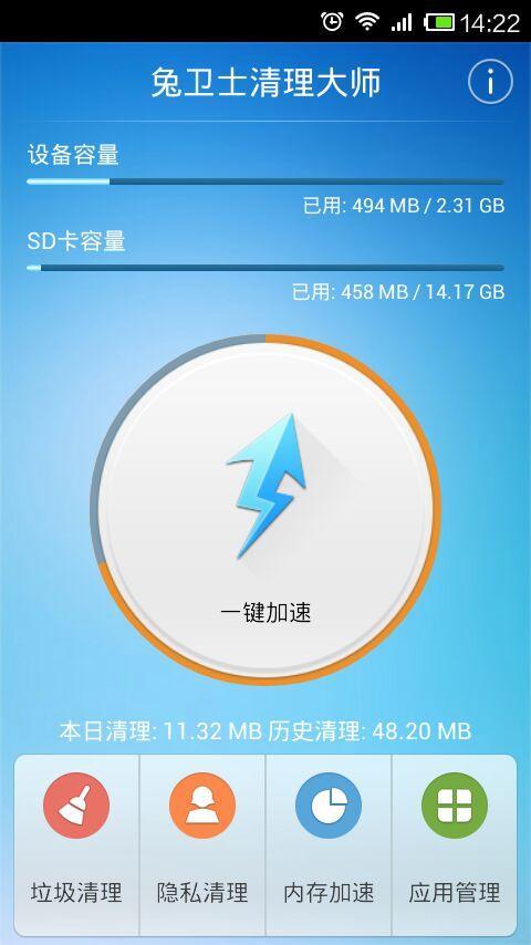 兔衛(wèi)士清理大師是一款適用于安卓系統(tǒng)的手機安全管理軟件。軟件由Toolwiz團隊開發(fā),支持中英文。主要有進(jìn)程、應(yīng)用管理,隱私、垃圾清理功能及其手電筒、心率儀等功能。下載使用讓您的手機不再擁有負(fù)擔(dān)。