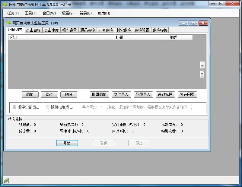 1、支持單頁面多目標點擊、多頁面多目標、框架頁面點擊、定時點擊、多線程高速連續(xù)點擊,自定義點擊間隔時間。2、程序后臺點擊或者前臺顯示點擊效果,可完全隱藏運行。