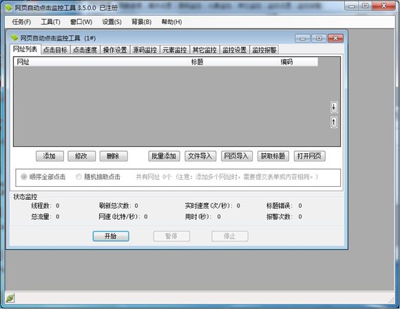 4、可同時添加點擊多個頁面,支持導入網頁所有鏈接,或指添加網址。
