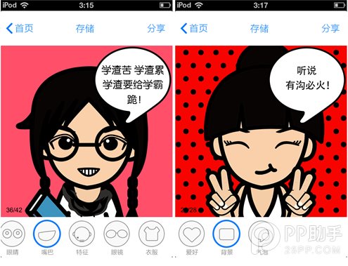 《臉萌》功能并不算豐富,開發(fā)團(tuán)隊(duì)專注于“拼出一張萌臉”偉業(yè)四百年;操作過程更是簡單得令人發(fā)指——學(xué)會(huì)“左右滑動(dòng)”就足夠了。應(yīng)用內(nèi)置了發(fā)型,五官,裝飾品,背景圖等從頭到肩一條龍修身項(xiàng)目,所有的選擇切換都只需要手指滑動(dòng)就可以實(shí)現(xiàn)。