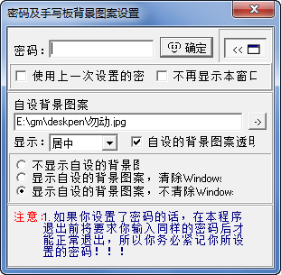 三.你可以在啟動桌面手寫板時自行指定手寫板背景圖案、及是否需要清除Windows桌面等功能。這些選項都有自動記憶功能,你設(shè)好一次后,當再次運行桌面手寫板時就可以不用再重新設(shè)定了。
