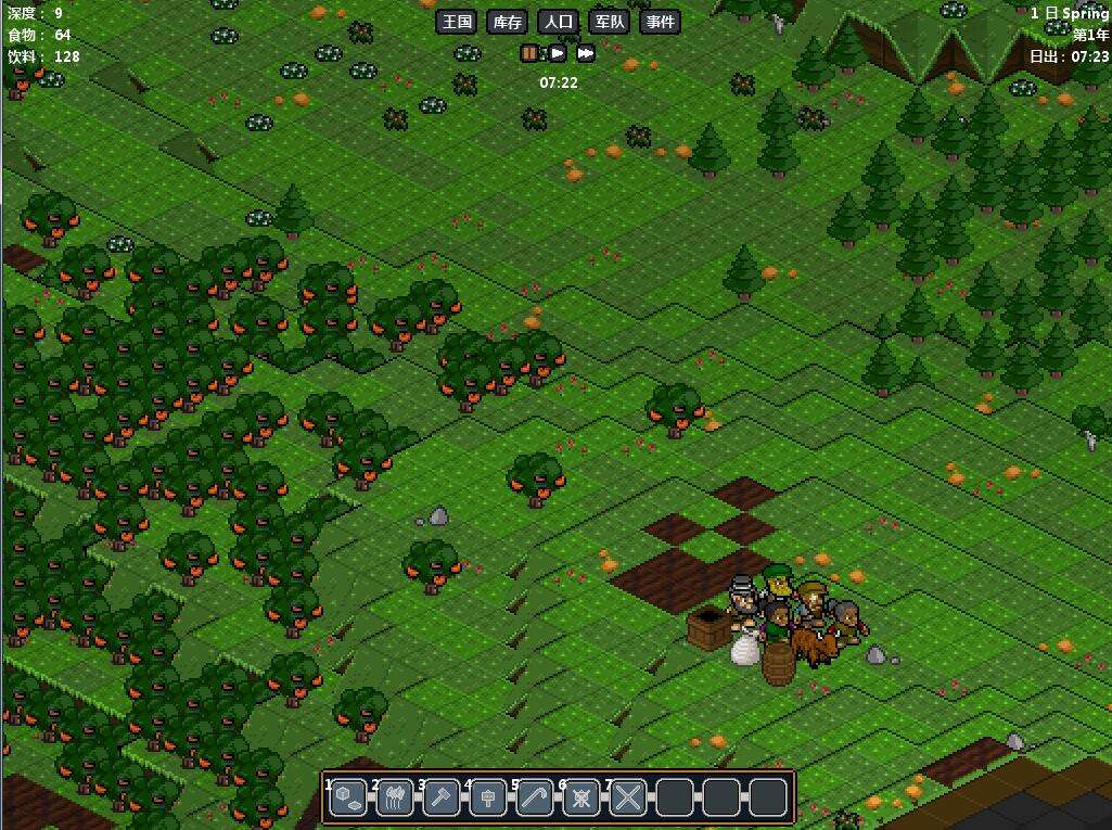 農(nóng)業(yè)包括棉花、小麥、水果。棉花以后主要用于制作床,需求量不是很大,再加上地圖中本身包含很多野生棉花,所以保持基本供應(yīng)即可,一般10×10格左右。小麥和水果比較重要,生產(chǎn)面包、水果酒等吃喝物資基本就靠這倆東西了。畜牧業(yè)最初只是給我們提供了兩頭牛(一公一母),設(shè)定一下區(qū)間可以生產(chǎn)牛奶和新的牛。林業(yè)非常重要,因?yàn)楹笃诘貓D那么一點(diǎn)木材基本是不夠用的。樹苗也很容易獲取,直接把地圖上的裁剪樹種就有了。注意蘋果樹要先采集蘋果,然后再裁剪。這里提一下,作物和畜牧業(yè)成長是很緩慢的,一般7~10天左右才會見到效果,所以不要太著急。做完這些工作就開始采集木材和石頭了。木材直接砍樹就可以,建議初期不到萬不得已不要動蘋果樹,因?yàn)樗梢圆粩嗌商O果,這是初期主要的糧食來源。石頭一般常見于-7層左右。多挖幾層就可以獲取。還需要注意一下,官方有人說怪物主要生成于6格內(nèi)沒有光照的地方,所以開采的時候不要一下子挖太大的空間。挖掘分為挖墻、挖地兩種。前者保留頂部一小層地板,后者把整個一層全部挖掉。