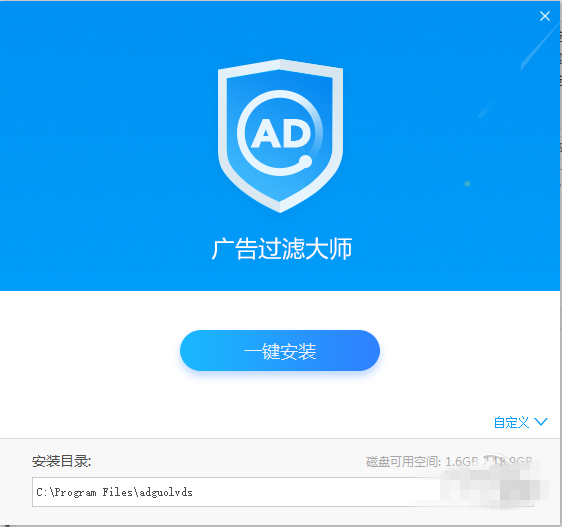 1、廣告過濾大師官方下載后,打開下載好的安裝包,可以直接單擊【一鍵安裝】。