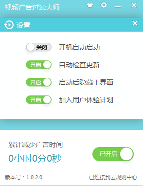3、軟件的右下角顯示“已連接云規(guī)則中心”表示開啟過濾成功,如果沒有連接到,請退出軟件,重新打開,并關(guān)閉瀏覽器重新打開。