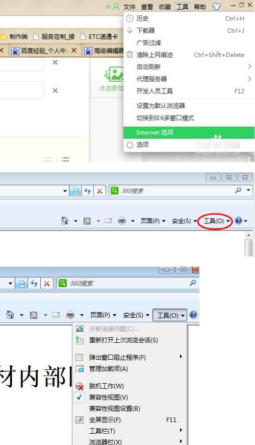 OA辦公系統(tǒng)不顯示正文 加載文檔打叉怎么辦首先打開瀏覽器的Internet選項(xiàng),如果是360瀏覽器,點(diǎn)擊菜單中 工具下的Internet選項(xiàng);如果是IE瀏覽器,點(diǎn)擊常用工具欄右邊的工具下來(lái)菜單,選擇 Internet選項(xiàng)。