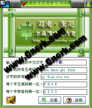 五筆拼音反查精靈是一款反查中文漢字的五筆輸入法(包括86王碼、98王碼)及拼音輸入法(包括拼音、智能ABC)的免費(fèi)軟件,當(dāng)您遇到不會(huì)打的五筆字或不會(huì)朗讀的陌生拼音漢字時(shí),不妨試試……