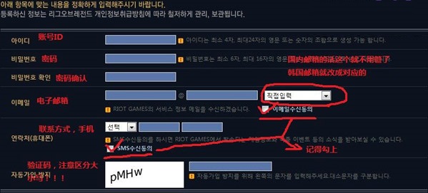 第五步、改版后,LOL韓服注冊(cè)需要手機(jī)認(rèn)證,黃色的兩個(gè)框框 最后記得勾上啊。