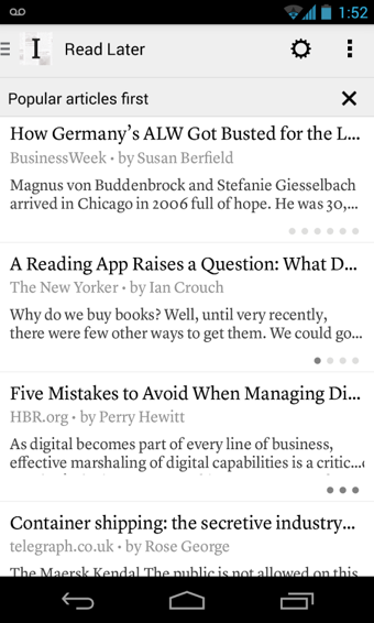 Instapaper 3.0.1 安卓版下載 Instapaper安卓版是一款簡單方便的離線閱讀軟件。你可以把想閱讀的網(wǎng)頁保存,然后通過應(yīng)用實(shí)現(xiàn)離線閱讀。Instapaper在用戶中口碑非常不錯(cuò),有需要的可以下載試用下。