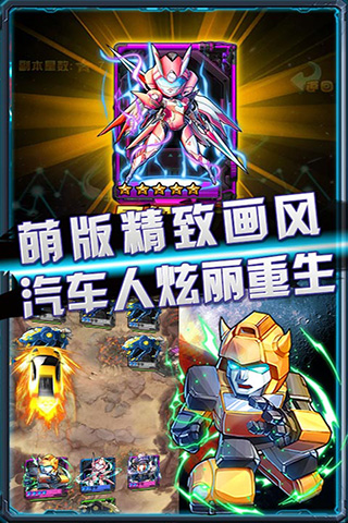 獨特變形卡牌 開創(chuàng)卡牌手游新紀元 ,極致招式特效 金屬碰撞!酣暢淋漓!簡單上手 休閑卡牌手游王道之選!萬人矚目,喚醒童年記憶!今日狂暴來襲!你從未見過的Q版擎天柱和威震天,諸多人物以前所未有的“塞伯坦形態(tài)”卷土重來!他們是你童年那份汽車人記憶中,最令你熱血澎湃的人物!回到汽車人的血腥戰(zhàn)場吧!體驗獨有3D特效引擎帶來的暢快打擊感!金屬碰撞!酣暢淋漓!