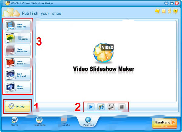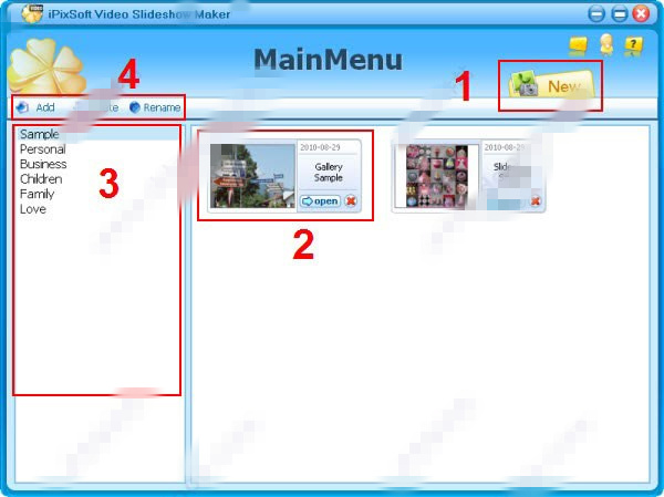 一、主菜單當(dāng)您啟動(dòng)iPixSoft Video Slideshow Maker時(shí),您將看到“主菜單”,可以在這里做些以下事例。