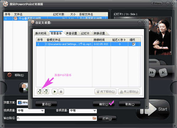 進(jìn)入自定義,設(shè)置切片時(shí)間、背景音樂(lè)等, 如圖