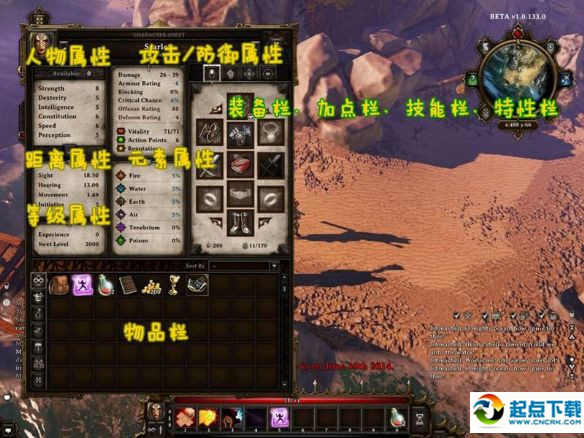 右側(cè)為裝備欄、加點欄、技能欄、特性欄。