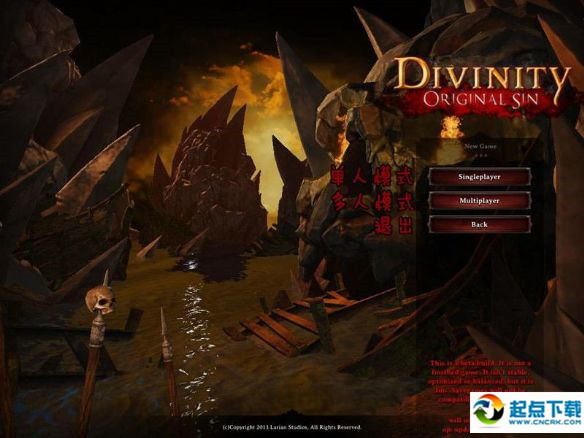 隨后就是進入到《神界3:原罪》的主菜單當中,第一項是“繼續(xù)游戲”(如果初次游戲,此位置為灰色,無法按動。以后進行游戲都從這兒進入)、第二項是“新游戲”(開啟新游戲都從這兒進入);