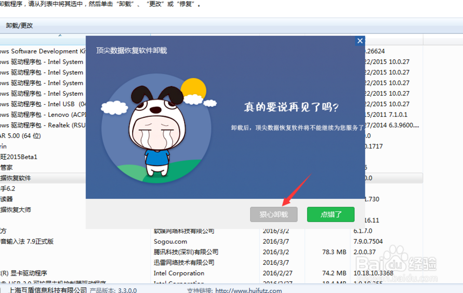 5、這里會有如圖示提示,我們點擊“狠心卸載”。