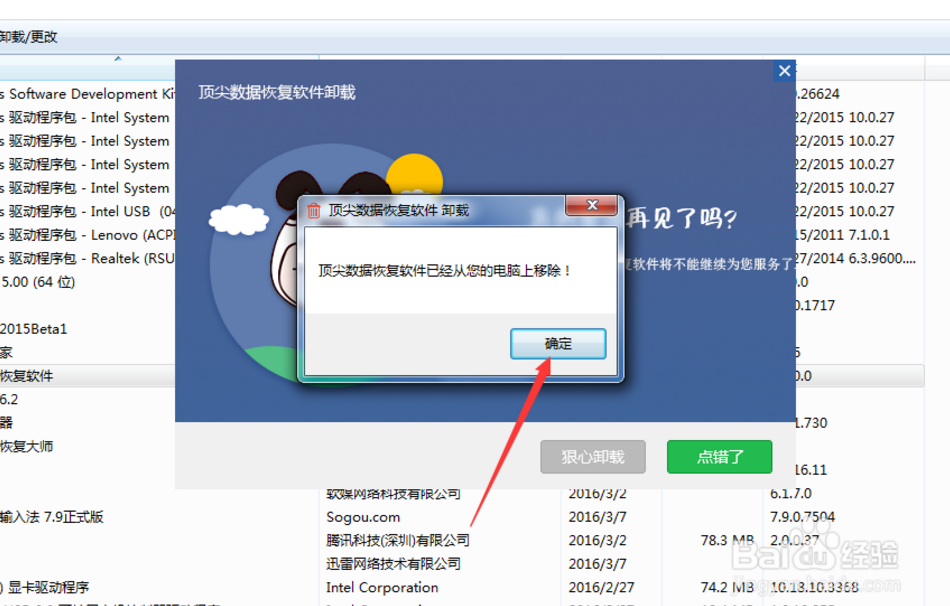 7、卸載這個軟件只需要一小會兒,很快就能看到如圖示界面,我們點擊確定即可。