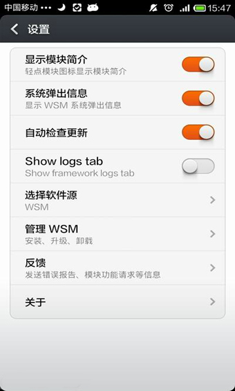 - 安卓玩家大多應(yīng)該知道Xposed框架!WSM Tools - WSM工具箱 作為MIUI上的Xposed框架,其功能和用法與Xposed框架 幾乎別無二致,故不在此贅述!【更新日志】