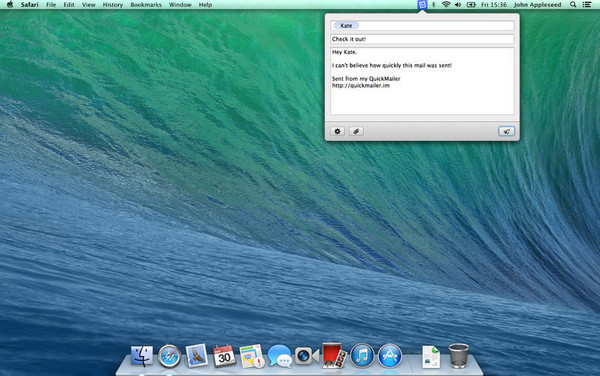 QuickMailer是一款Mac平臺(tái)的菜單欄的快速郵件客戶端 ,它藏身于系統(tǒng)菜單欄,點(diǎn)擊彈出的氣泡窗口僅由郵件的三大必要部分(地址、標(biāo)題、內(nèi)容)以及三個(gè)按鈕(發(fā)送、附件、設(shè)置)組成。