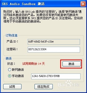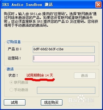 雙擊桌面的快捷圖標啟動程序,出現(xiàn)激活對話框,試用期14天!