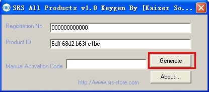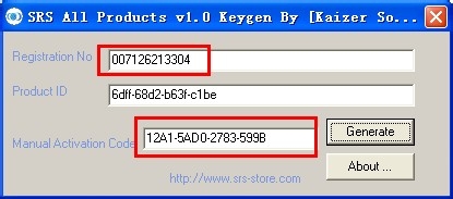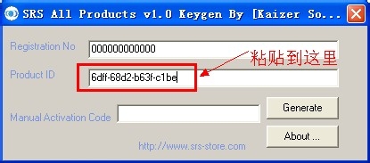 將剛才復制的產(chǎn)品碼粘貼到這里。并點擊“Generate”按鈕,會生成注冊碼和手動激活碼。