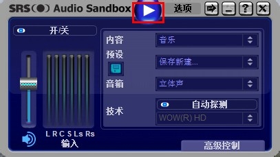這個是開啟Windows系統(tǒng)默認音/視頻播放器的按鈕。搞清楚哦,SRS Audio Sandbox只是音效軟件,本身不是播放器。