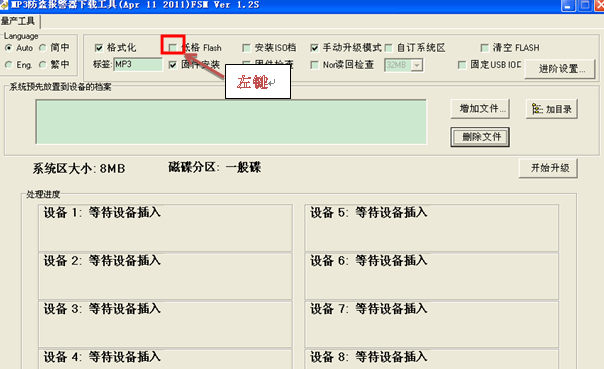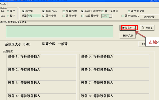 然后點(diǎn)擊套用關(guān)閉設(shè)定窗口。 在主量產(chǎn)界面選擇增加文件如下圖: