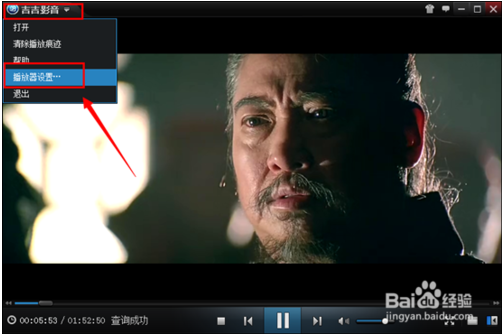 打開吉吉影音播放器之后,找到左上方如下圖。點(diǎn)擊小箭頭進(jìn)入設(shè)置選項(xiàng)---播放器設(shè)置