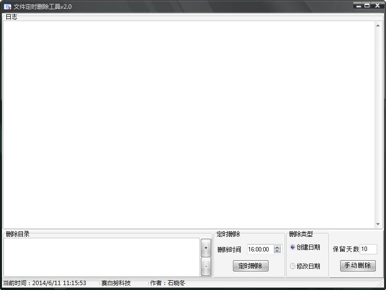 文件定時(shí)刪除工具deletefile,一款小巧易用的軟件,可以設(shè)置電腦內(nèi)指定文件的定時(shí)刪除,保證充裕的空間可利用。有刪除目錄、刪除時(shí)間、保留天數(shù)選項(xiàng)可設(shè)置,還可以查看文件刪除日志。