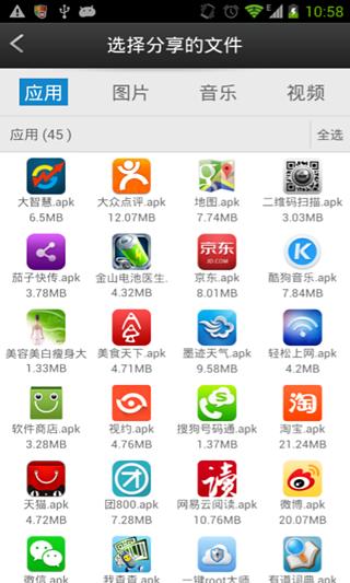 6、免流量分享手機照片、視頻、音樂、手機程序,分享給一個或多個好友;