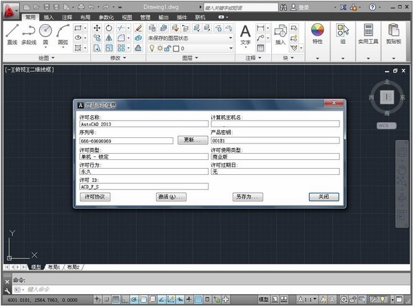 1、安裝AutoCAD2013 64位2、使用安裝序列號(hào):666-69696969, 667-98989898, 400-45454545 066-66666666 或者其它符合這個(gè)版本的序列號(hào))